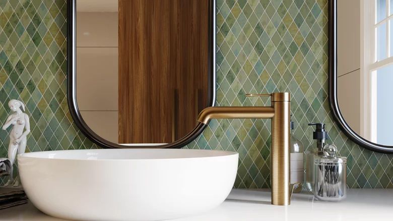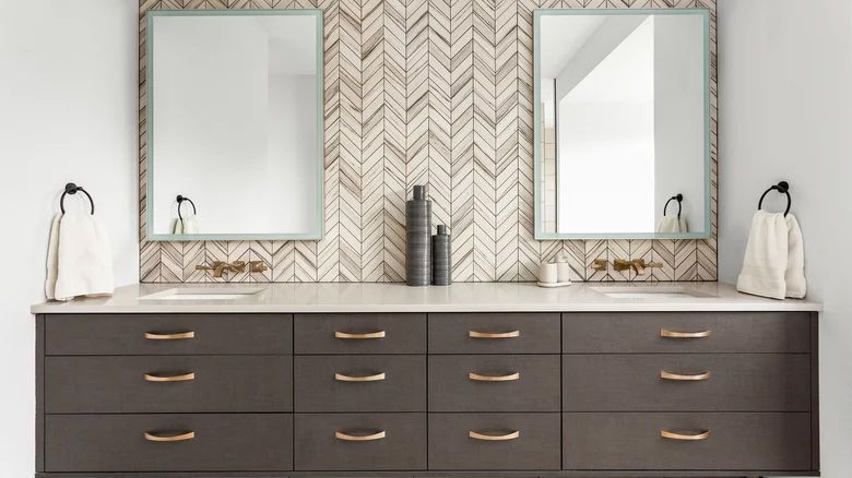 While you've probably got one main mirror hanging in your bathroom, it's time to get a little more creative and add a few more into the mix. SFGate says that mirrors make any small or dark space feel both brighter and bigger. Any light that is in the room, natural or artificial, will bounce off of mirrors and reflective surfaces. However, large mirrors are not cheap, so you may have to get creative with your budget and design.