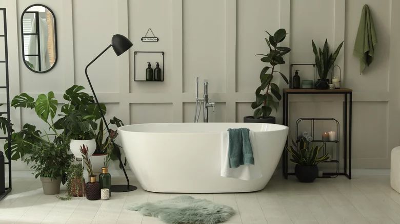 When it feels like all the lamps, mirrors, and paint coats just can't break through the darkness of your windowless bathroom, it's time to head to the plant nursery and pick up some shade-loving friends. While Plant Care Today notes that all plants need some sunlight, some don't need much at all, and by simply rotating them in and out of the bathroom, you shouldn't have a problem keeping them alive.